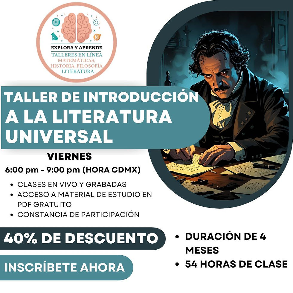 Objetivo general:El taller busca ofrecer a los estudiantes una comprensión integral de la literatura como una manifestación cultural, artística y humana, explorando sus orígenes, géneros, estilos y transformaciones a lo largo de la historia. Se pretende que los participantes no solo adquieran conocimientos teóricos, sino que desarrollen sensibilidad crítica, capacidad de análisis y disfrute estético de las obras literarias, vinculando la lectura con su propia experiencia y contexto.